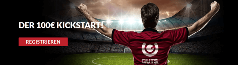 Der Neukundenbonus gilt als eine starke Werbeaktion, die einen deutlichen Vorteil für jeden Buchmacher in diesem vollen Wettmarkt sein kann. Am Anfang, als der Buchmacher sein Wettgeschäft gestartet hat und vorwiegend auf den Bereich Casino gerichtet war, war der Bonus für Sportwetten nicht so konkurrenzfähig. Der Wettanbieter hat mit der Zeit schnell begriffen, dass ein verlockender Neukundenbonus in dem Sportwetten Bereich im Vergleich zu der Konkurrenz angeboten sein muss, um attraktiv für die Kunden zu bleiben. Aktuell bietet der Buchmacher ein großzügiges Angebot für die Fans von Sportwetten. Jeder Neukunde hat das Recht, den 100%igen Bonus bis zu 100 € bei seiner ersten Einzahlung zu beanspruchen. Dieser Bonus platziert Guts unter den führenden Buchmachern auf dem Wettmarkt.