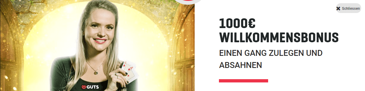 Nach dem detaillierten Testbericht aller Charakteristiken von Guts ist es die Zeit für unsere gesamte Bewertung gekommen. Es ist wichtig hier zu erwähnen, dass der Buchmacher hauptsächlich nach den deutschen, englischen und skandinavischen Wettmärkten gerichtet ist. Aus diesem Grund bietet Guts einen sehr attraktiven Neukundenbonus zu seinen deutschen Kunden an. Die Spieler im Casino werden auch nicht enttäuscht bleiben, da diese eine große Auswahl an Casino Spiele und einen zusätzlichen Bonus bis zu 250 € für neue Spieler genießen werden. Dasselbe gilt für die Poker Fans, die mit einem Bonus bis zu 1000 € belohnt werden können. Dieser Bonus gilt nur für Ihr Spiel an den Tischen von Guts. Nicht zuletzt werden wir die guten Koeffizienten von dem Buchmacher hinzufügen. Weiter betonen wir auf die Sicherheit der persönlichen Daten und der Bankinformation der Kunden und auf den guten Kundendienst. Zum Schluss können wir sagen, dass Guts rapid expandiert und sich ständig verbessert, so dass er sich bald über einen Anteil von dem deutschen Wettmarkt freut.