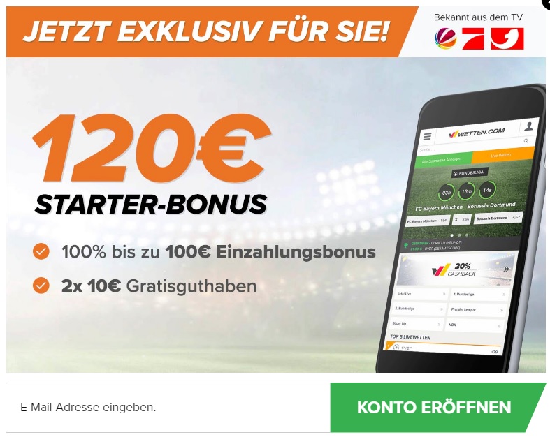 Dabei kann man dies bei einer minimalen Wettquote in Höhe von 2.00 tätigen, was wir als gerecht bezeichnen können, und auf Top Clubs wie Chelsea oder Tottenham wetten. Das Wichtigste für Wetten.com ist eigentlich die Einzahlung zusammen mit dem Bonusbetrag innerhalb dieser 21 Tagen 6 Mal umzusetzen. Weiterhin achtet er auch sehr darauf die Wettkunden keine Systemtipps zu platzieren. So kann man den Bonus nur dann auszahlen lassen, wenn man alle diesen Anforderungen des Buchmachers erfüllt hat. Wenn man Interesse an weiteren allmähligen Bonusse hat, muss sich auch den Interwetten Bonuskode anschauen.