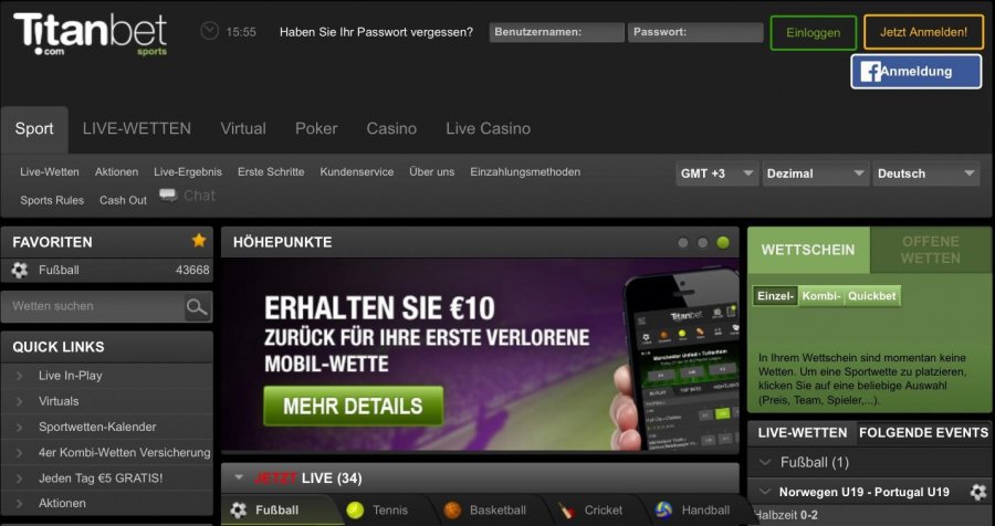 Im Casino werden Sie die Titanbet Casino Special Aktion “20 € Extra” auch noch entdecken. Im Titanbet Poker Online werden Sie die attraktive Spielauswahl genießen. Und in dem Titanbet Live Casino werden die freundlichen Live-Dealer Sie herzlich begrüßen! In dem Sportwetten Bereich bietet der Buchmacher Ihnen weitere Aktionen wie die Titanbet Gratiswette bis zu 25 € und die Titanbet Multi Wetten-Versicherung bis zu 10 € an. Falls Sie Ihre Wette vorzeitig auswerten wollen, dann nutzen Sie die Titanbet Cash Out Option. Auf diese Weise haben Sie die Chance, auch per App entweder Ihre Gewinne zu sichern oder Ihre Verluste zu minimieren Das ganze Portfolio des Buchmachers ist auch per Titanbet Mobile App für unterwegs zugänglich, wo Sie auch von dem Titanbet Mobile Bonus profitieren können. Viel Spaß beim Spielen!